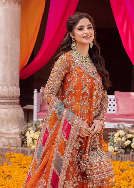 Description: The striking panelled angrakha canvas design in tangerine fit, which vividly seeks attention. The stunning masterpiece, has embroidery and embellishments that glisten with every step. The long flowing silhouette exudes grace and elegance. This traditional outfit is paired with…